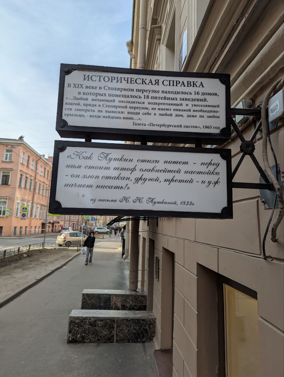 СПб 2025. В Питере - пить... Думала, куда бы прилепить эту строчку из песни... Так вот, на одной из экскурсий рассказывали, откуда пошёл жест, щелчка по шее, как приглашение к выпивке. Это жест пошёл исключительно из Санкт-Петербурга с Петровских времён. Только версии как обычно две. Одна из них гласит, что Пётр I наградил одного мастера с «золотыми» руками грамотой, предъявителю которой, в любом питейном заведении должны были наливать бесплатно. Но грамота по пьяни терялась, потом восстанавливалась. После очередной утери грамоты, Пётр I повелел на шее мастера выжечь клеймо в виде печати. Теперь мастер, заходя в питейное заведение, щелкал по шее показывая, что для него все бесплатно. По другой версии, во времена борьбы с пьянством на шею выпивохам вешали "медаль", весом от 4 до 6 кг. В наказание. И должен он был с этой медалью ходить и не пить определённый срок. При этом его сородичи жалели и наливали в кабаках бесплатно, стоило лишь ему щёлкнуть по шее, указывая на "наг