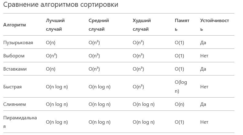 этой статье рассмотрим основные алгоритмы сортировки, их временную и