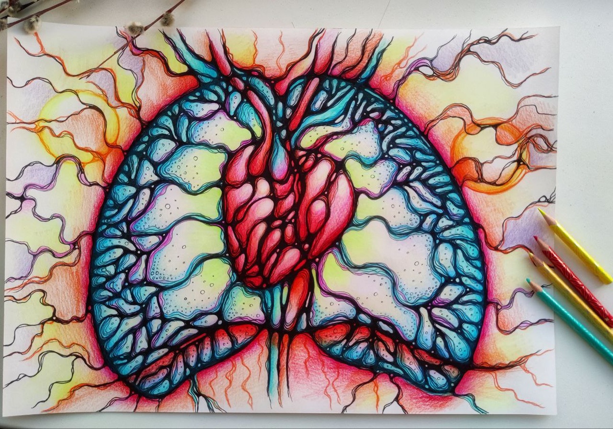 Tatiana: "Добрый вечер,дорогие коллеги ❤️ Сегодня рисовала практику из курса Нейротело - Лёгкие и сердце