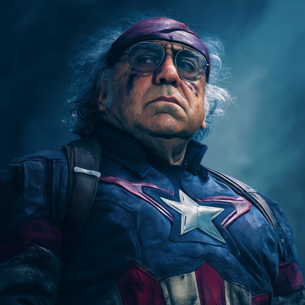 Создано на основе запроса: Danny Devito as Captain America, cinematic
