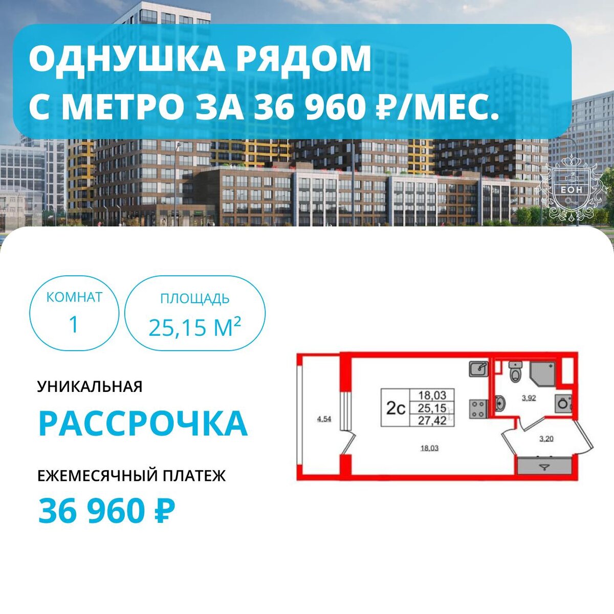 ⚡️ Однушка рядом с метро за 36 960 ₽ в месяц