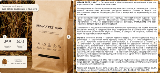 Поскольку заказчица не упомянула конкретный корм, то для анализа был взят Magnusson Grain Free Light - https://magnussons.ru/grainfreelight?ysclid=m918n8gnkf485917594#stage_tab1.