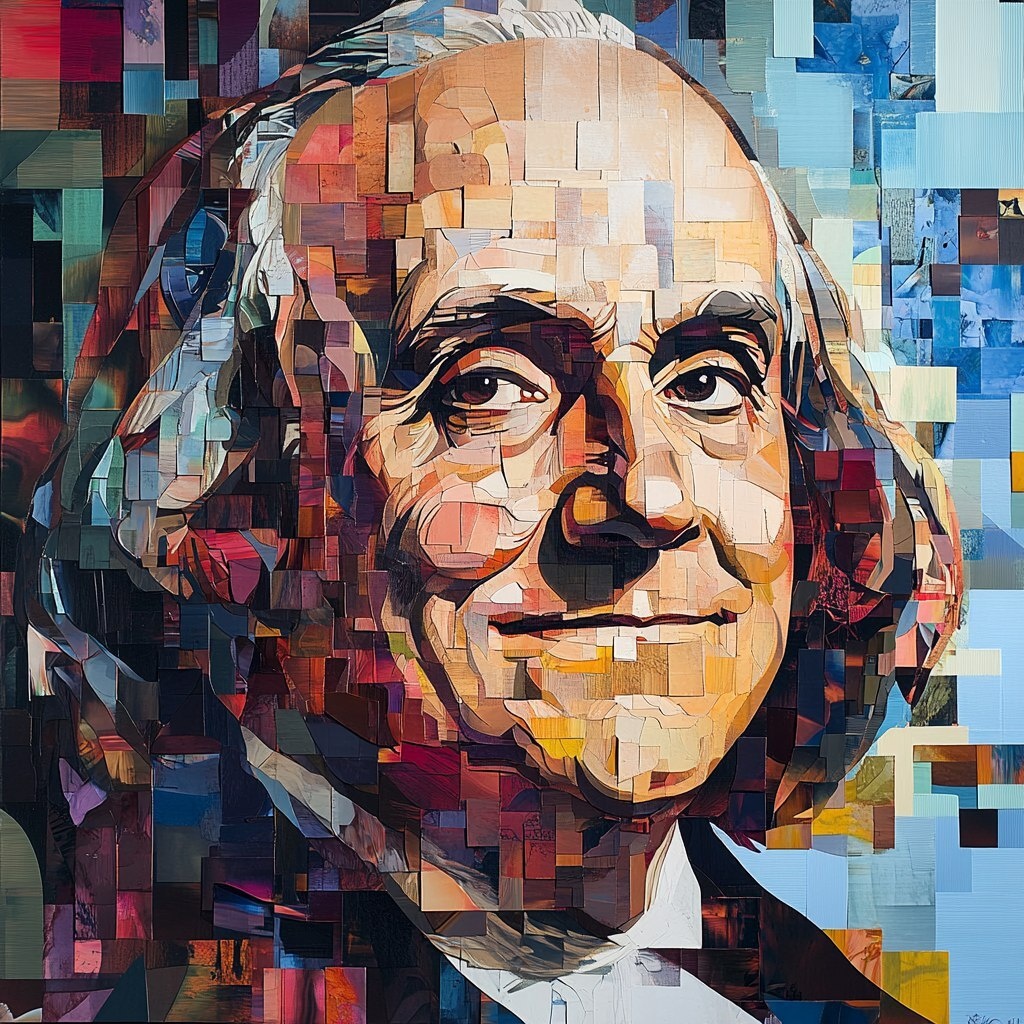 Создано на основе запроса: Benjamin Franklin portrait, smiling confidently, background, founding of the United States --- Автоперевод: Бенджамин Франклин Портрет, уверенно улыбаясь, фон, основание Соединенных Штатов Что скажешь? 🤔 https://dzen.ru/id/65c0c65c86e4f837c27b24d7 #ИИ #AI #нейросеть #midjourney #art