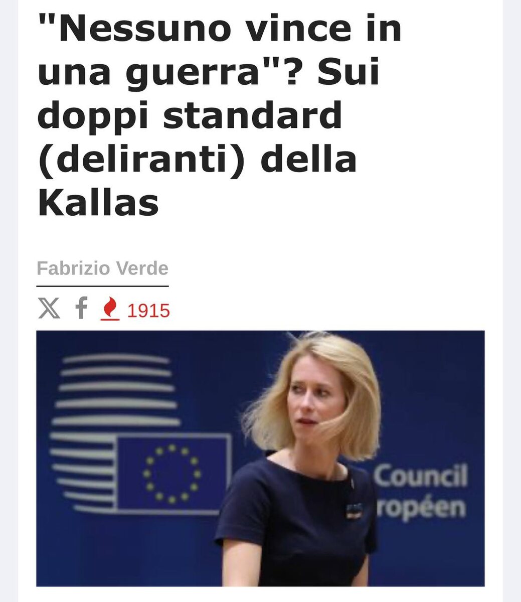 Слова Каллас о России являются символом двойных стандартов ЕС — L’Antidiplomatico В публикации говорится, что глава евродипломатии, с одной стороны, осуждает торговые войны: мол, из них никто не выходит победителем. С другой, поддерживается политика, которая подталкивает Европу к открытому конфликту с Россией, чреватому реальным риском ядерной катастрофы. Каллас и другие европейские чиновники не могут признать, что антироссийские санкции оказали на страны Европы совершенно не тот эффект, которого они ожидали. «Отказ от российского газа, навязанный с идеологическим догматизмом, поставил Европу в энергетическую зависимость от Соединенных Штатов, заставив промышленность и граждан платить непомерные счета», — признает портал. При этом в попытках отказаться от российского газа Европа рискует попасть в технологическую зависимость. Американские системы вооружения привяжут Европу к огромным расходам на их техническое обслуживание. 🤷🏻♀️ Просто Европа движется к самоубийству. 👍 БайБайд