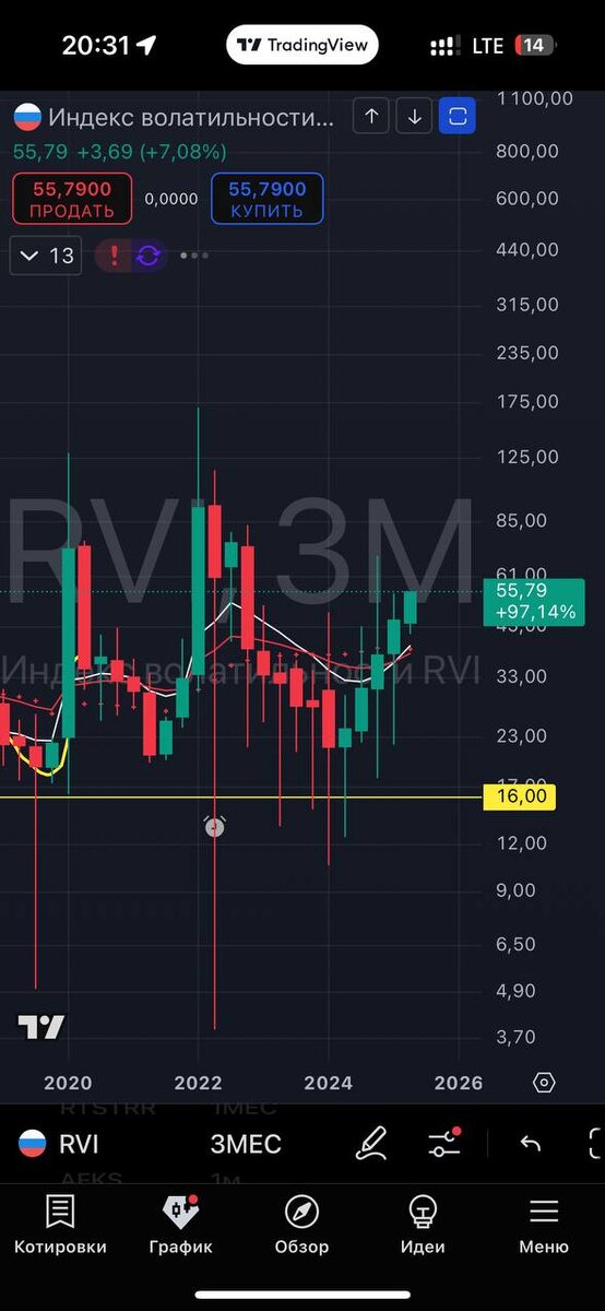 Эфир сегодня не провожу. Особо не хочется. Отдыхаю, как уже поняли. Но по рынку могу сказать вот что. Эта штука(индекс волатильности/страха) пока не выглядит, что свое закончила. А такие недели на индексе даже не были перед СВО.