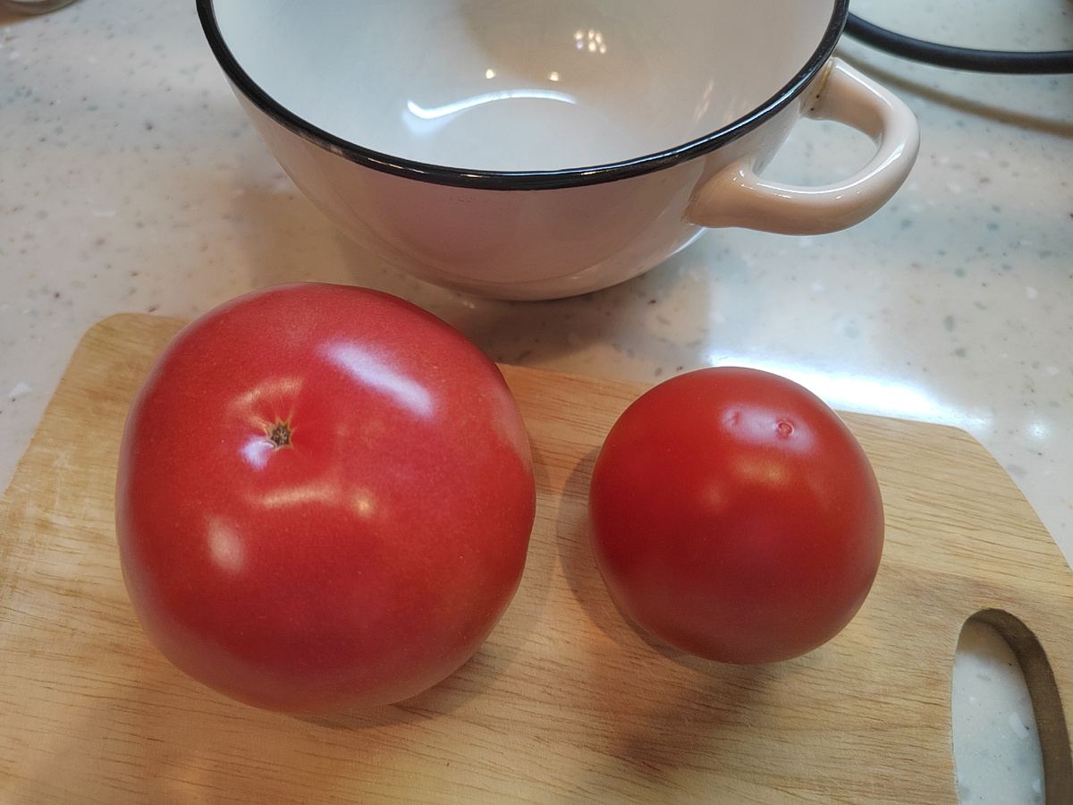 Хочу поделиться моим «секретным», но в тоже время очень простым рецептом аппетитного, лёгкого (но и достаточно сытного) томатного супа. Приготовить его достаточно просто и быстро. Для приготовления понадобится крупная глубокая кружка-чашка (т.н. «суповая») и столовая ложка... ещё разделочная доска и нож (можно и руками порвать 😮, но нарезать удобнее 😄🤷♂️), а из продуктов: Как видите, ингредиентов потребуется очень немного... Помидоры нарезаем и не обязательно мелко – достаточно будет так чтобы в чашку плотно уложить. Уложили в чашку – полейте растительным маслом (достаточно будет той самой столовой ложки масла), постарайтесь равномерно. Если опасаетесь лишних калорий – можно и просто сбрызнуть, используя масло-спрей, но тогда опрыскайте каждый выкладываемый слой (поверьте, это важно для вкусовых качеств готового супа). Поставьте чашку в микроволновую печь на 2-3 минуты средней мощности – в результате томаты размякнут... Теперь можно добавить соль-специи по вкусу и даже добавить из