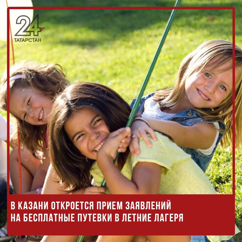 📑⛺️В Казани откроется прием заявлений на бесплатные путевки в летние лагеря С 7 апреля в Казани стартует приём заявлений на получение социальных путёвок в детские лагеря для летнего отдыха. Об этом сообщили в городском центре «Ял». Бесплатные путёвки смогут получить дети из малообеспеченных семей, дети-инвалиды школьного возраста, а также несовершеннолетние из семей беженцев. Ребятам предложат на выбор несколько лагерей в Татарстане и соседних регионах: «Молодежный» (Высокогорский район), «Заречье» (Казань), «имени Ю. Гагарина» (республика Марий Эл), «Берсут» (Мамадышский район), «Раздолье» (Чистопольский район). Подать заявление можно будет на сайте городского центра «Ял». Приём начнётся 7 апреля в 15:00. К заявлению необходимо приложить оригиналы и копии СНИЛС, свидетельства о рождении, паспорта заявителя и документа, подтверждающего право на получение путёвки. Подписаться на Татарстан-24 Отправить новость