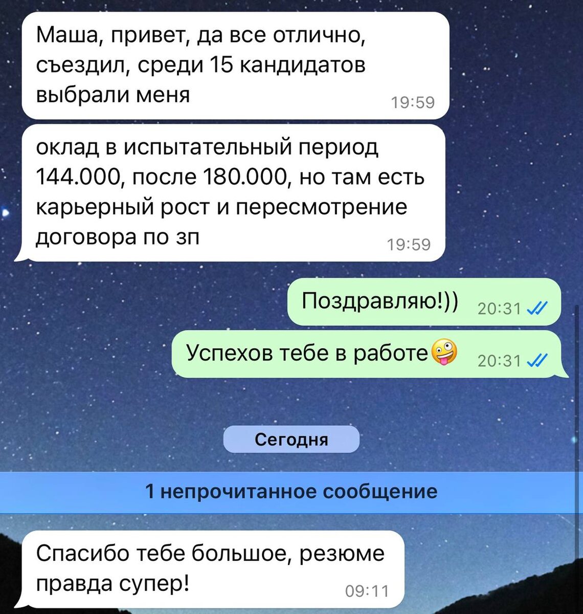 ‘У своих хуже и дороже’ История про то, как ко мне обратился знакомый за помощью. Всю процедуру провели согласно инструкции😁: через анкету собрала информацию по опыту, обсудили возможные достижения и зафиксировали самые яркие из них, оплата в полном размере и четкое следование моим рекомендациям. И вот вам результат :)). Соискатель с минимальным опытом в должности системный администратор (1,5 года) и за 1 неделю оффер с такими условиями! А вы согласны, что к друзьям лучше не обращаться за помощью?🤪 #отзывы_Эклер