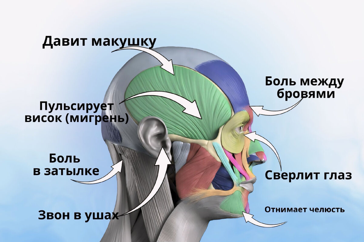 Боль обычно симметричная, охватывает лоб, виски и затылок. Часто она появляется к концу дня, особенно если вы много сидели в неудобной позе, работали за компьютером или переживали стресс.