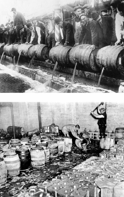 Уничтожение незаконных запасов алкоголя во время сухого закона