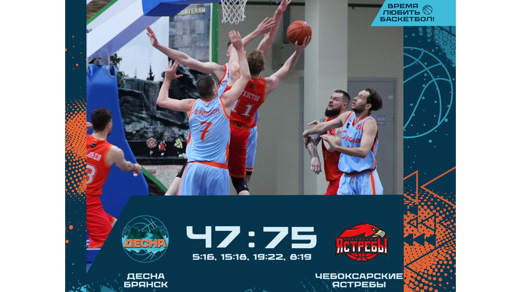 В Брянске на главной арене Дворца единоборств баскетбольный клуб «Десна» рассчитывал во втором мачте четвертьфинала плей-офф чемпионата высшей лиги навязать «Чебоксарским ястребам» свою волю и сравнять счет в серии. Сейчас тренерскому штабу брянской команды предстоит проанализировать, почему баскетболисты на площадке после стартового свистка сразу сникли. Брянцы никак не могли разыграть мяч до верного броска. Кольцо соперника казалось словно заколдованное. При этом у гостей получалось буквально все на паркете, и первая четверть завершилась с преимуществом чебоксарских баскетболистов в 11 очков. Во второй четверти хозяева нащупали свою игру, но гости умело перекрыли все подходы к своему кольцу. Броски с дальней дистанции у брянцев редко достигали цели. В целом четверть оказалась практически равной, но «ястребы» к большому перерыву все же увеличили отрыв до 14 очков. В третьей четверти «Десна» продолжила погоню за очками, но соперник все также грамотно контролировал ход игры, не позволив