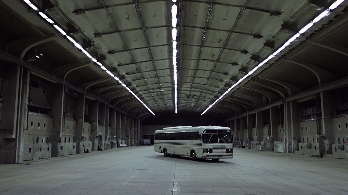 Создано на основе запроса: we see the Real Madrid FC team coach parked in a large hangar. the hangar is empty and we only see the coach in the center - it is a huge place with high ceilings. it is night outside. the lighting inside the hangar is cold. the light comes from the fluorescent lights that are placed on the ceiling and walls. the hangar has metal walls and a concrete floor. there are concrete columns distributed all over the hangar. cinematic light. depth of field. realistic photo. real details. real photo. --- Автоперевод: Мы видим, как тренер команды «Реал Мадрид» припарковался в большом ангаре. Как тебе это изображение? 🤔 https://dzen.ru/id/65c0c65c86e4f837c27b24d7 #ИИ #AI #нейросеть #midjourney #art