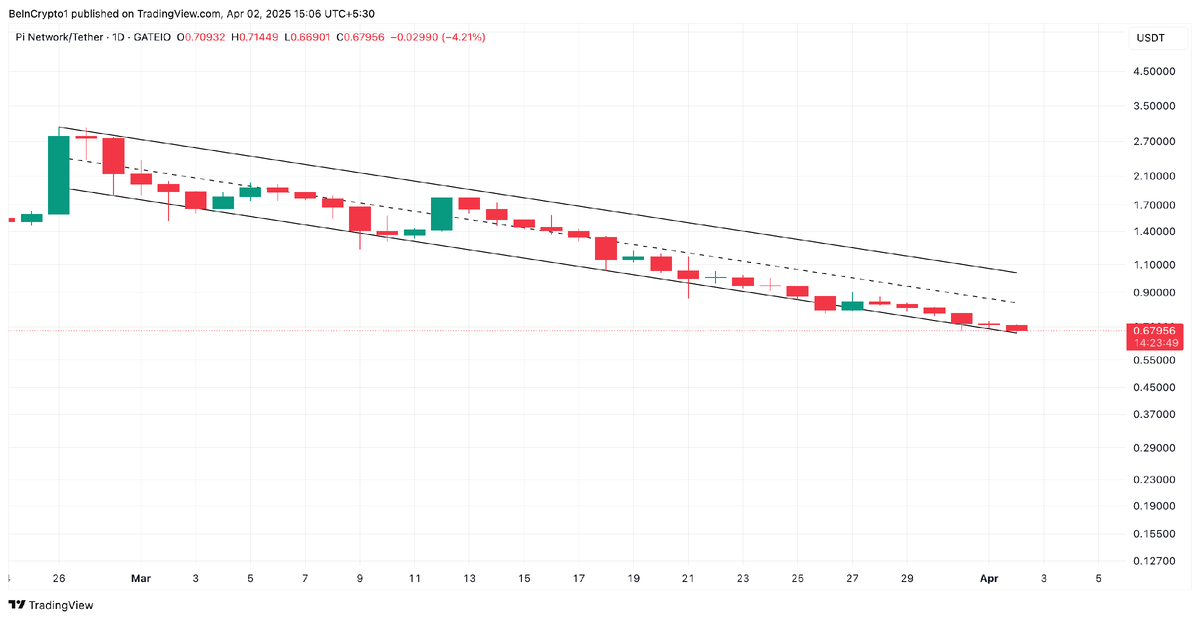 После завершения долгожданного этапа миграции Pi Network 14 марта 2025 года, который требовал от пользователей прохождения KYC и переноса балансов, нативный токен PI столкнулся с масштабными распродажами. Инвесторы, годами ожидавшие выхода актива на биржи, начали активно продавать токены в течение последнего месяца. На фоне ослабления покупательского спроса трейдеры задаются вопросом: продолжится ли нисходящий тренд в апреле? С момента достижения исторического максимума в $3 (26 февраля) PI торгуется в рамках нисходящего параллельного канала. На данный момент цена составляет $0,67, что означает падение на 78%. Такой технический паттерн указывает на слабую рыночную структуру, а его пробой вниз может привести к еще большему снижению стоимости токена. Если продавцы сохранят контроль над рынком, PI рискует продолжить падение в апреле. По словам операционного директора Bitget Wallet Элвина Кана, переход на основную сеть привел к значительному росту продаж среди ранних инвесторов. Также вы