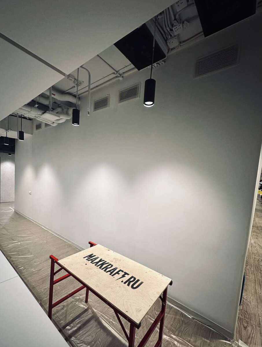 Так, что у вас тут происходит?! Сегодня был мощный день! Встал в 5 утра, где то 6:30 уже приехал на работу, привез весь стафф, разгрузился. Поработал и в 19 уже приступил к стене… Заклеил, загрунтовал, проверил проектер - все. Только что вывалился домой, налил вина. Завтра уже рисуем и красим! А на фото мой холст - 305 на 685 см! #wip