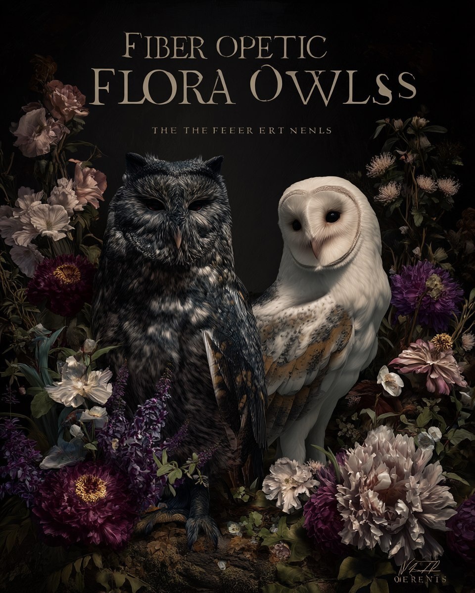 Создано на основе запроса: horror movie poster, large font says "Fiber Optic Floral Owls", haunted by Fiber Optic Floral Owls, the terror