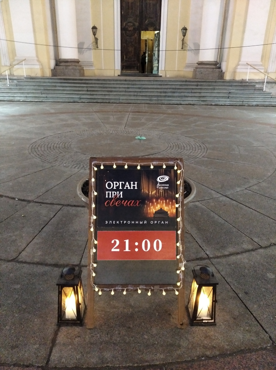 С игрой Сергея Буслова я познакомилась на концерте в Белом зале Политехнического. Там зритель видел и инструмент и того, кто на нем играет. В базилике же орган расположен на втором этаже над входом и пришедший на концерт не видит ничего и никого, только слышит. А акустика в храме замечательная.