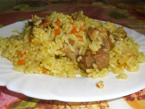 Куриная гр,масло растительное немного,лук,морковь,чеснок, приправы и обязательно зирра,соль.Все это обжарить. Затем,фото с приправами,кипятим чайник,чтобы залить потом плов кипятком. Рассыпчатый плов готов,когда вода выпарилась я его отношу в постель и час он стоит под подушкой и наслаждайтесь вкусным быстрым пловом.