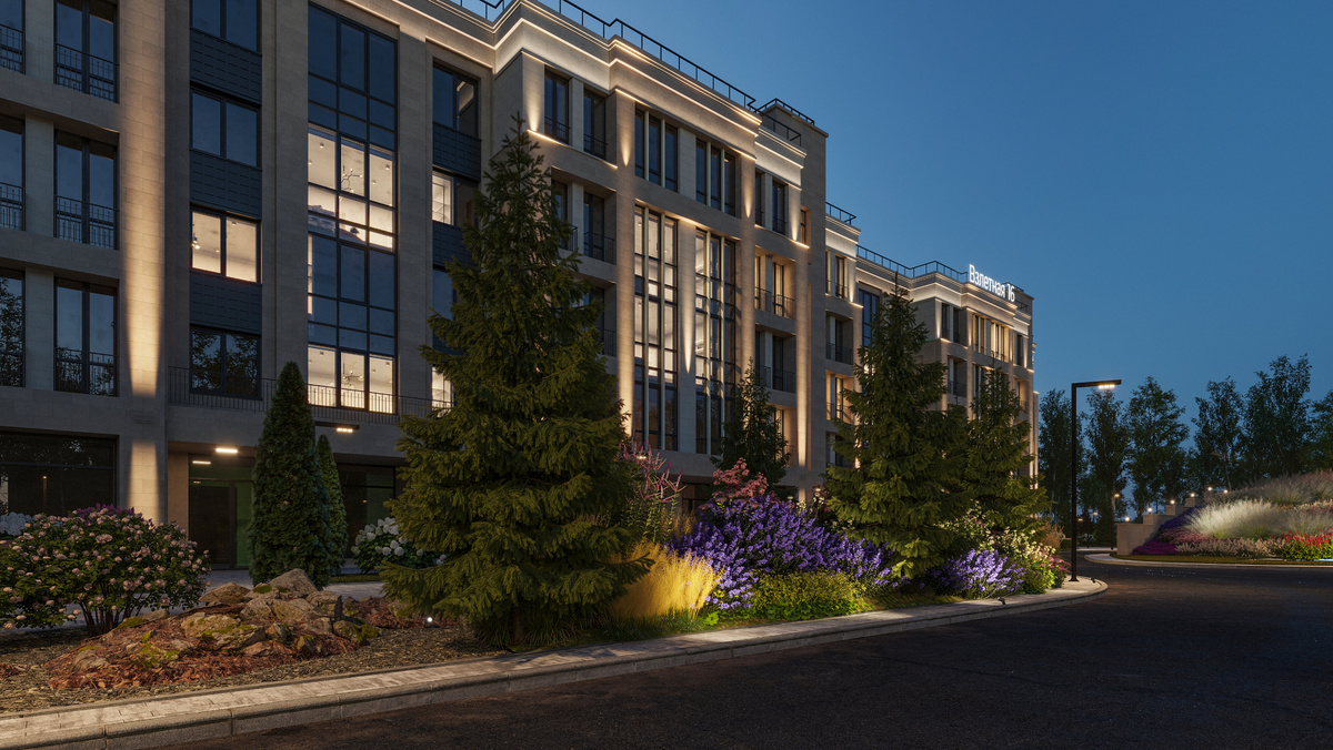 Особое внимание на Взлетной, 16 уделено тому, что находится вокруг дома в закрытом благоустроенном дворе. Там предусмотрено дизайнерское озеленение. Растения, типичные для Северо-Запада, смогут облагораживать пространство круглый год. Зимой там будут радовать глаз хвойные растения. Весной, летом и осенью оденутся в листву кусты и деревья разных пород. Также там будут цвести цветы. Проект озеленения двора затрагивает даже подземный паркинг. Жителям не придется смотреть на техническую крышу из окон. Она будет гармонично вписываться в ландшафт и радовать глаз зелеными насаждениями.