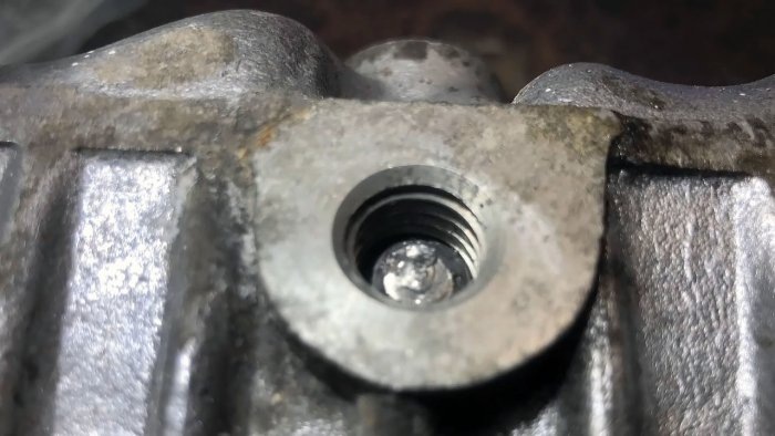 Когда обламывается болт или шпилька и остается глубоко в отверстии, положение кажется безвыходным. Такое случается, если: Ситуация еще больше усугубляется тем, что деталь может быть большой и дорогостоящей (в нашем случае – поддон картера из алюминиевого сплава), а узел, где застрял обломок метиза, ответственный и заменить его нечем. Это дело усложняется, если сломанный болт или шпилька остались в отверстии детали, выполненной из алюминиевого или магниевого сплава, который намного мягче стального метиза. Поэтому извлекать обломок следует очень аккуратно и осторожно, чтобы не повредить резьбу в отверстии детали. Для того чтобы повысить вероятность успешного извлечения сломанных метизов из резьбовых отверстий совсем не лишними будут следующие операции: Такие мероприятия в комплексе существенно облегчат процедуру извлечения из отверстия остатков болта или шпильки. Наибольшую трудность представляет извлечение обломка метиза с неплоской поверхностью излома. При попытке засверливания