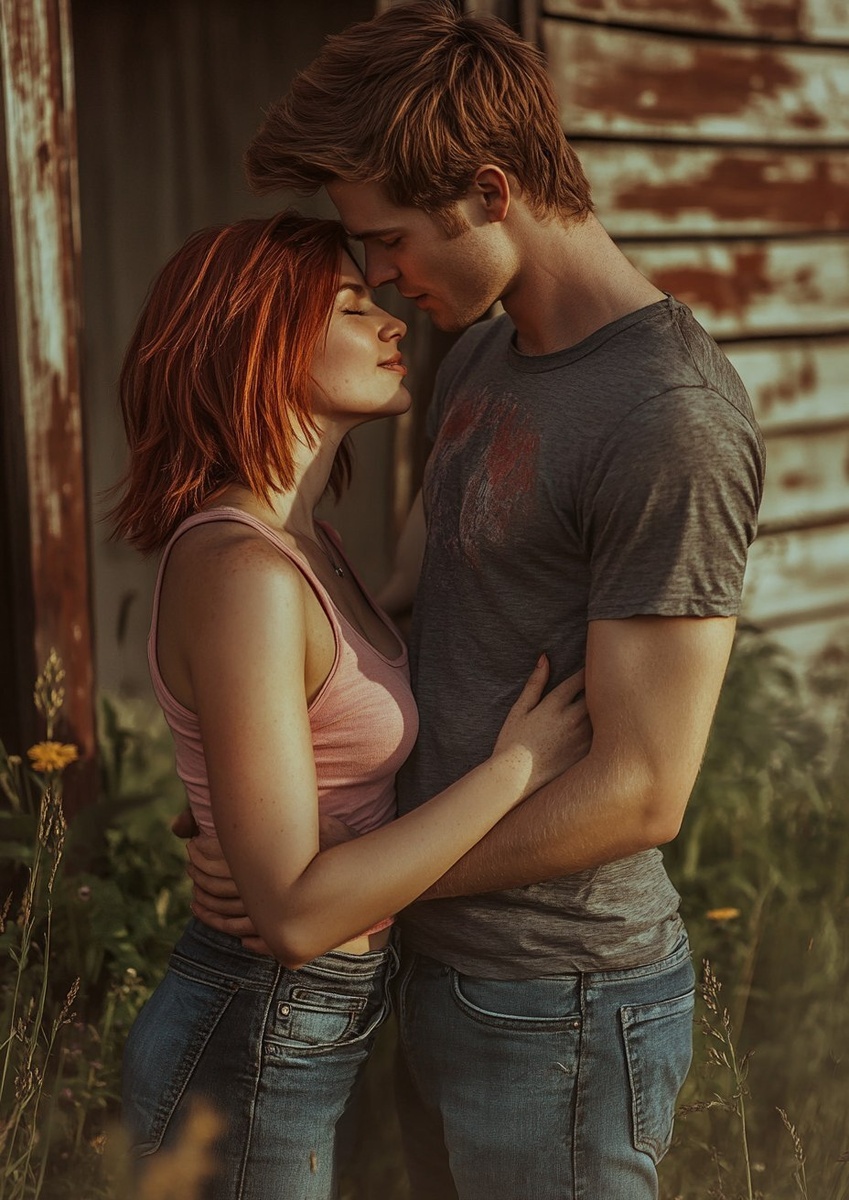 Создано на основе запроса: photorealistic color modern couple in their 30s holding each other about to kiss near a barn. He is much taller than her and wearing a t-shirt and jeans, she is short with shoulder length strawberry hair and wearing jeans and pink tank, romantic, golden hour, full-body --- Автоперевод: Фотореалистическая цветовая современная пара в возрасте 30 лет держала друг друга, чтобы поцеловаться возле сарая. Какое твое мнение? 🤔 https://dzen.ru/id/65c0c65c86e4f837c27b24d7 #ИИ #AI #нейросеть #midjourney #art