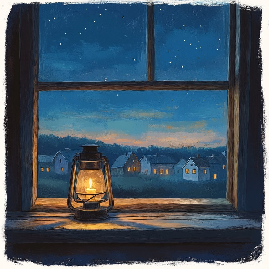 Создано на основе запроса: A soft, warm-toned illustration of a small brass lantern sitting on a wooden windowsill, glowing gently in the evening light. The glow spreads outward, creating a comforting warmth that contrasts with the cool, deep-blue sky outside. Beyond the window, small houses in the distance shine with lanterns in their windows, symbolizing how kindness spreads. A few twinkling stars scatter across the sky, reinforcing the message that God’s light never fades. The scene has a storybook-like, painterly style with soft, blended edges and warm golden hues that give a sense of peace and encouragement. --- Автоперевод: Мягкая, теплой тонированная иллюстрация маленького латунного фонаря, сидящего на деревянном подоконнике, мягко светится в вечернем свете. Как тебе такое изображение? 🤔 https://dzen.ru/id/65c0c65c86e4f837c27b24d7 #ИИ #AI #нейросеть #midjourney #art