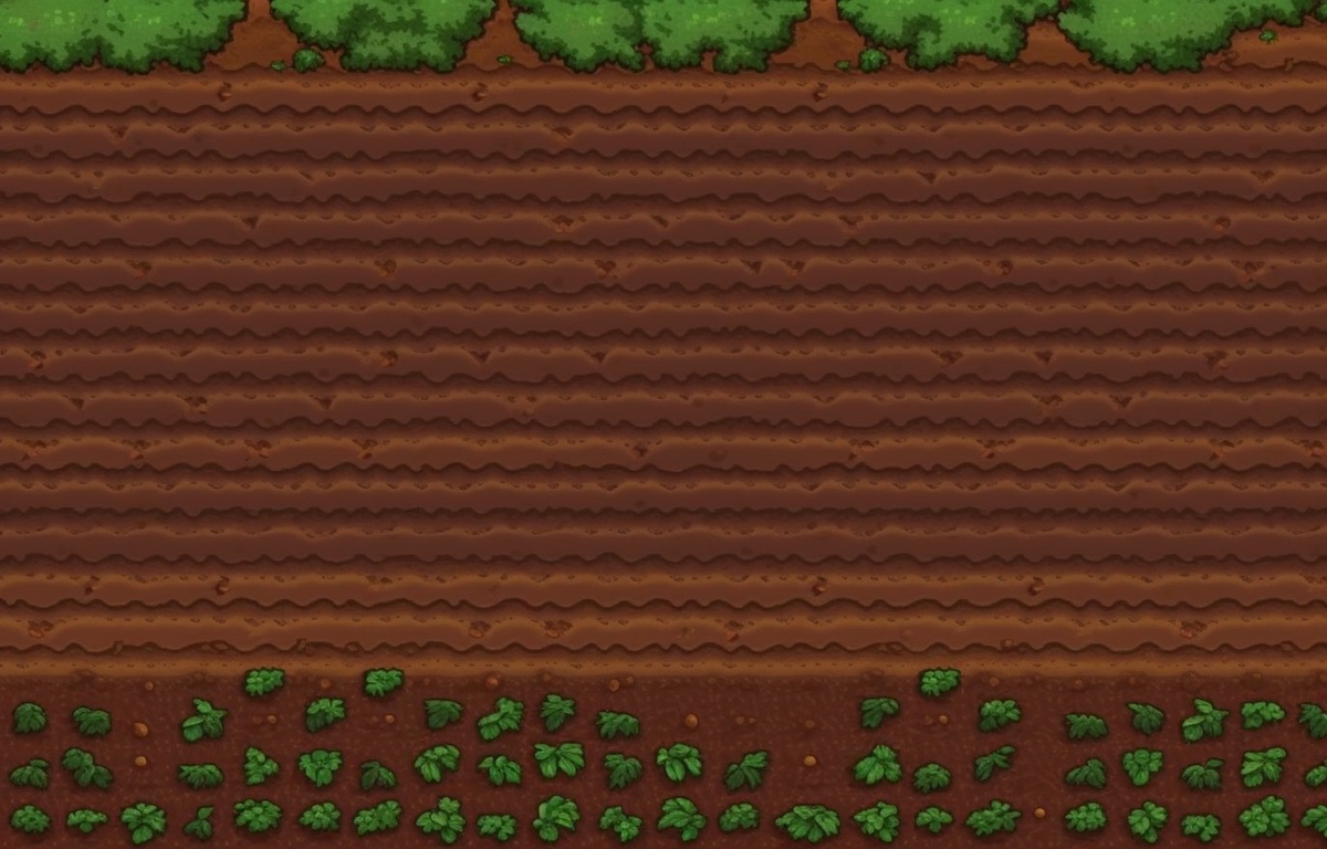 Создано на основе запроса: tilled garden soil, farm ground texture, top-down view, rich brown earth with furrows, moist dirt, pixel art