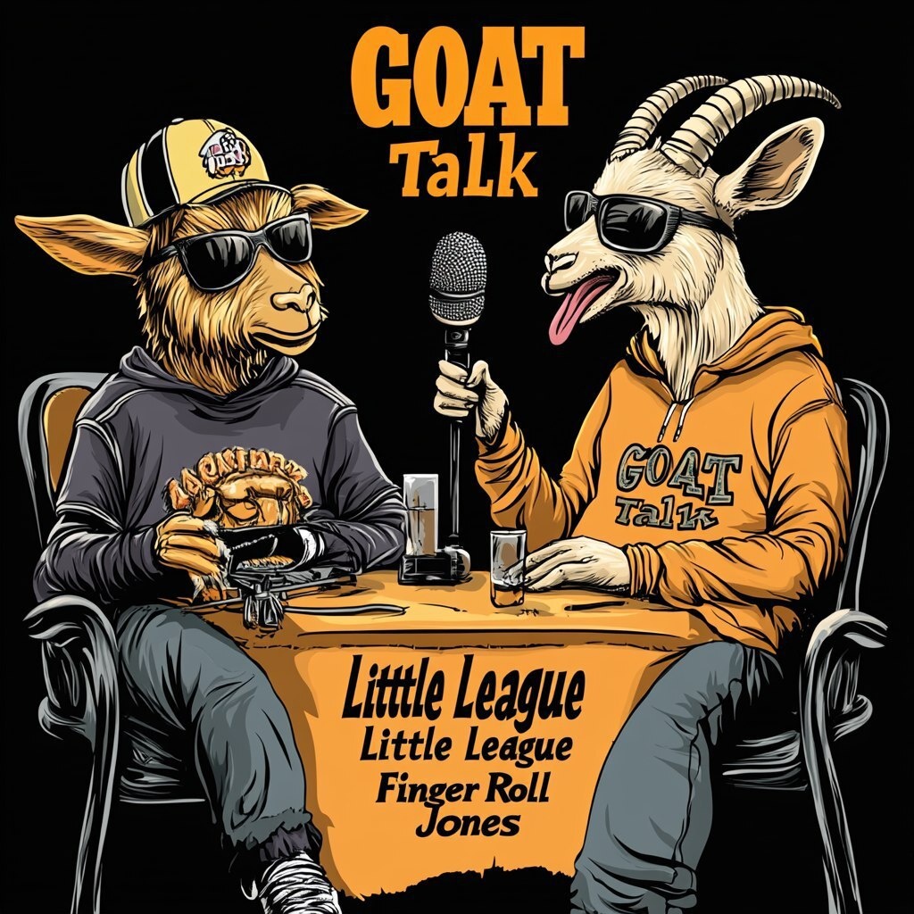 Создано на основе запроса: design me a high quality logo for "GOAT Talk" the show stars "Little League Larry" and "Finger Roll Jones" keep