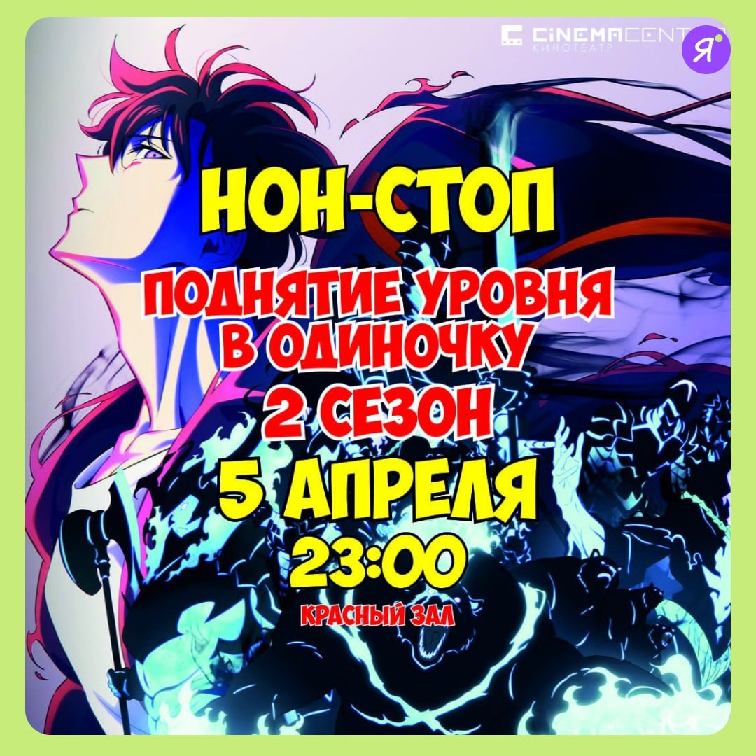 Аниме нон-стоп #Вкино 5 апреля в кинотеатре Cinema Center состоится специальный показ всех серий второго сезона популярного аниме. О чем сезон: 🤩Сон Джин-Ву осваивает силу теней 🤩Новые противники и испытания 🤩Кульминационная битва за остров Чеджу 🤩5 апреля | 23:00 🤩 Cinema Center, Красный зал 🤩 Билеты на cinema-center.ru Online Якутия | Подписаться