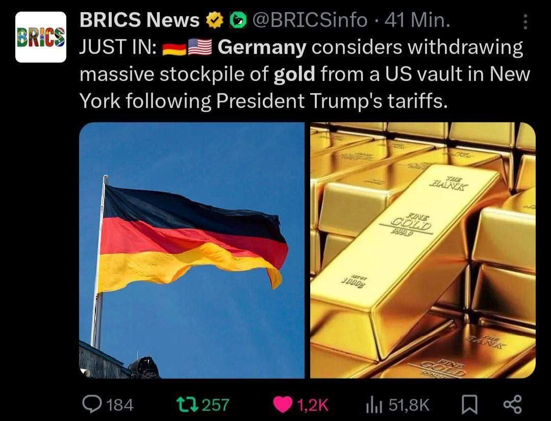 Германия собирается изъять из хранилищ в США свой золотой запас.