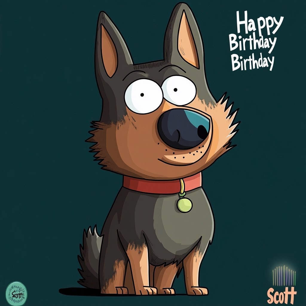 Создано на основе запроса: "Happy Birthday", "Scott", German Shepherd, south park style
