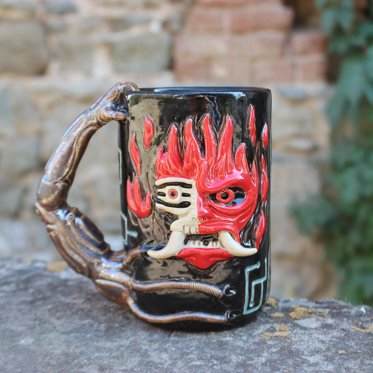 Кружка прошлогодняя, но все же решил поделиться как одной из самых удачных работ 2024-го года. На самом деле их там целых две - на маленькой тренировался, на большой развил успех.)