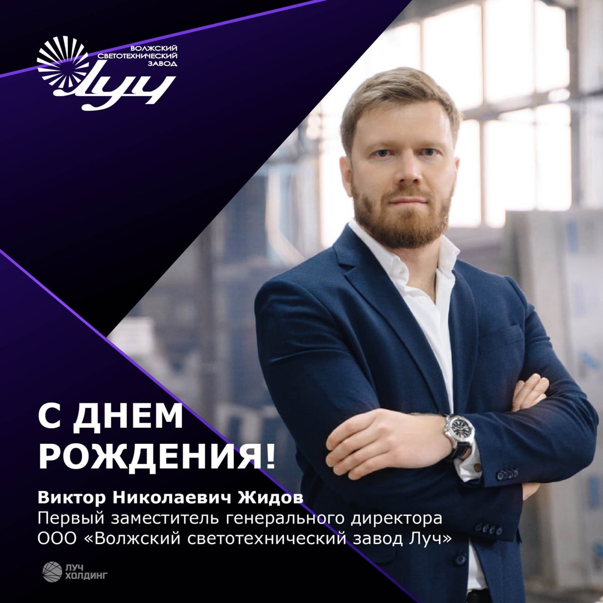 Сегодня день рождения отмечает первый заместитель генерального директора ООО «Волжский светотехнический завод Луч» Виктор Николаевич Жидов! Поздравляем с Днём Рождения! Пусть каждый день приносит новые возможности, интересные задачи и уверенность в завтрашнем дне. Желаем крепкого здоровья, благополучия, успешной реализации всех планов и стабильного роста! Пусть энергия и энтузиазм помогают достигать новых высот, а рядом всегда будут надёжные коллеги и единомышленники.