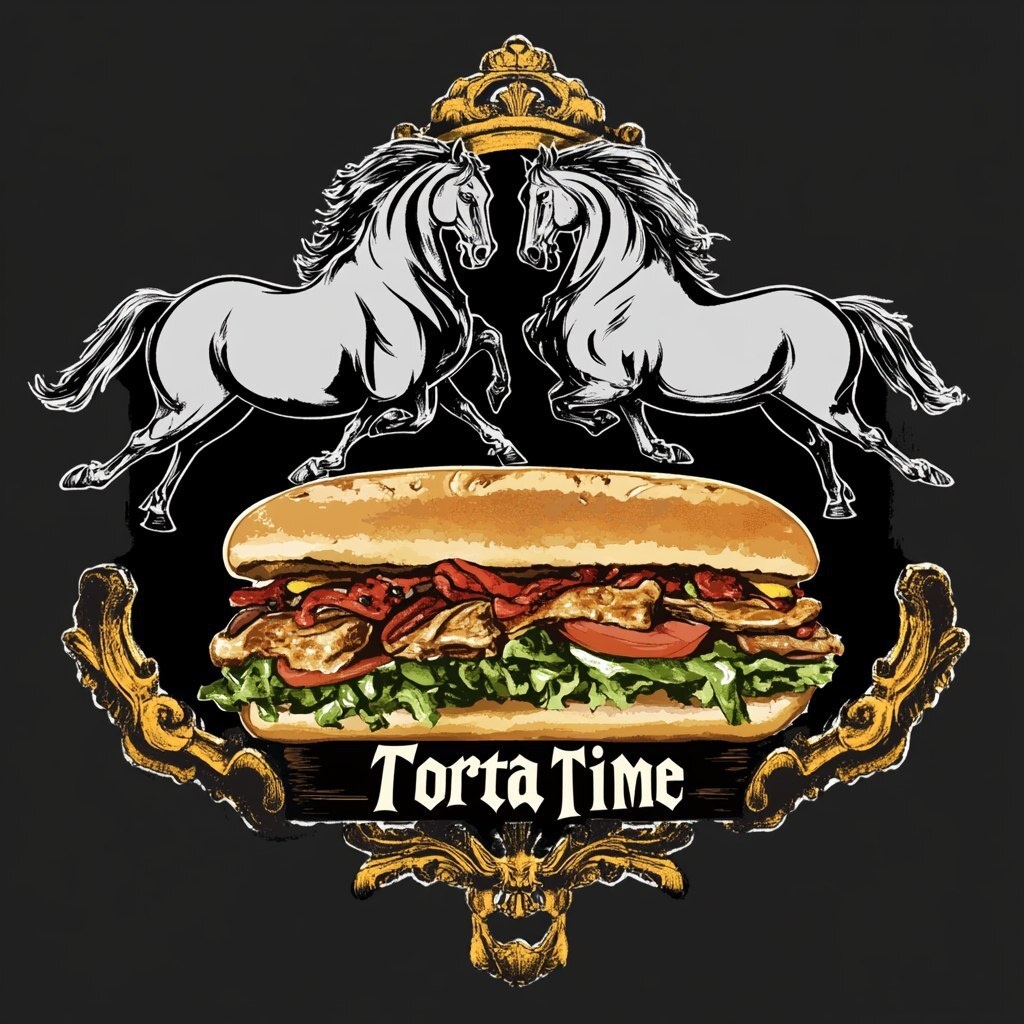 Создано на основе запроса: Logo for a YouTube Channel,in the middle there are the wrords "Torta Time",in the background a Mexican Sandwich