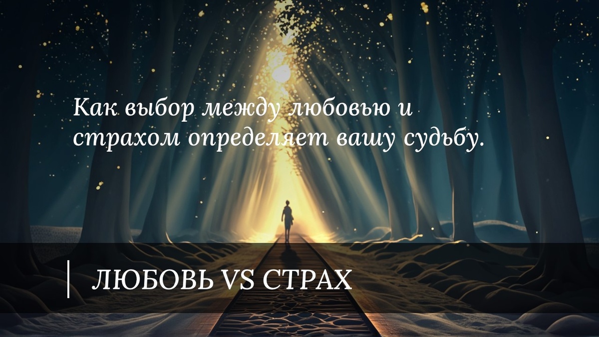 Как говорил Альбер Камю: "Жизнь — это постоянный выбор между двумя дорогами". Каждый день мы делаем выбор, который формирует нашу судьбу. Этот выбор не всегда очевиден, но его последствия ощутимы. Путь любви ❤️ ведёт к гармонии и реализации потенциала, а путь страха 😨 приводит к замкнутому кругу ограничений и конфликтов.