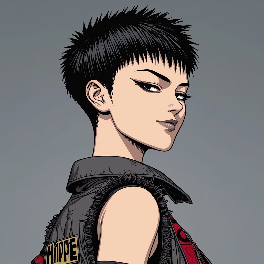 Создано на основе запроса: Katsuhiro Otomo - Akira style side portrait of an anime-style woman with asymmetrical jet black hair and blunt bangs, piercing black eyes, sharp eyeliner, wearing a grey sleeveless streetwear jacket over a black tee, confident smirk, pale skin, high contrast lighting, ultra-detailed, clean cel-shading, clean grey background --- Автоперевод: Katsuhiro Otomo-портрет на боковой стороне аниме в стиле аниме с асимметричной струйной черной волосами и тупыми челками, пронзительными черными глазами, острым подводкой для глаз, в сером руке для уличной одежды на черный тройник, уверенная в себе сетка, бледная кожа, высокопрофессиональное освещение, ультра Что думаешь? 🤔 https://dzen.ru/id/65c0c65c86e4f837c27b24d7 #ИИ #AI #нейросеть #midjourney #art