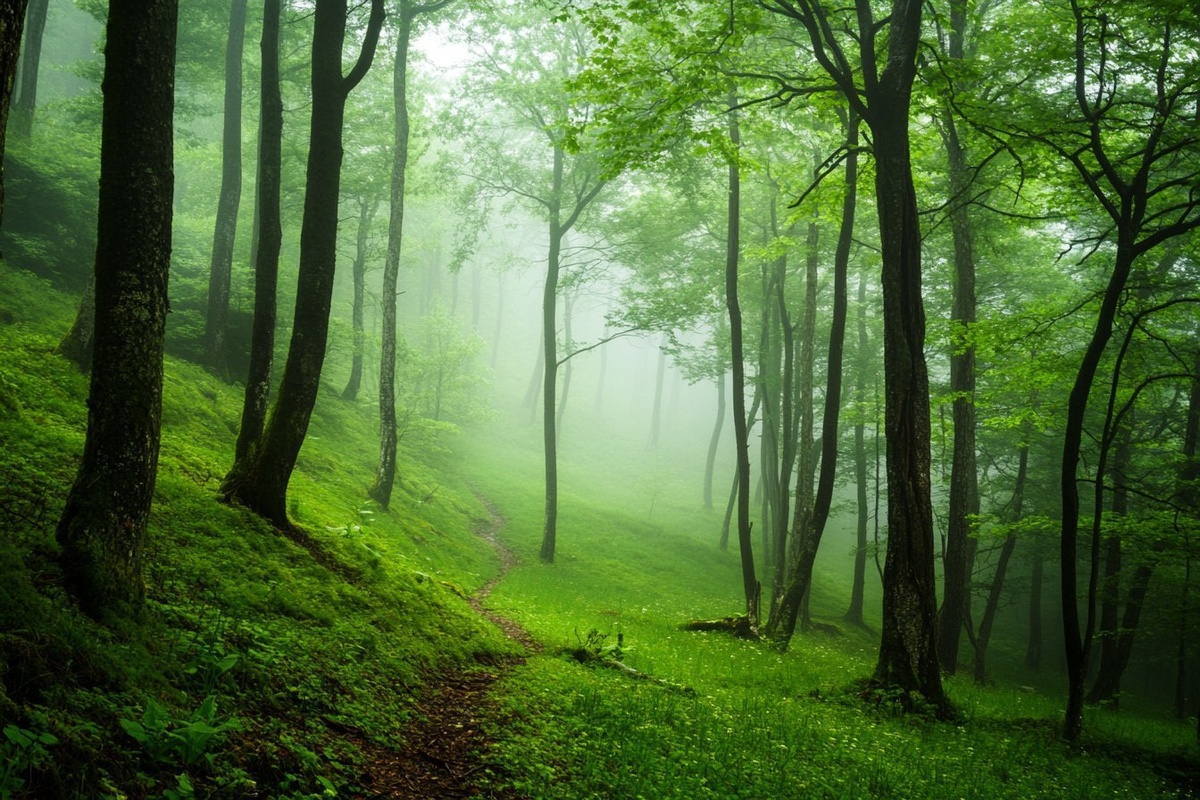 Создано на основе запроса: foggy forest lake landscape, best quality