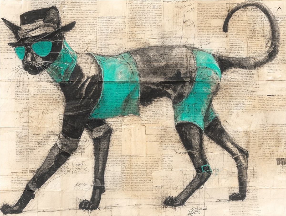 Создано на основе запроса: Enigmatic Voynich Manuscript-inspired Art, Playful and Annoying, Mischievous Cat, Unique and Bizarre Feline