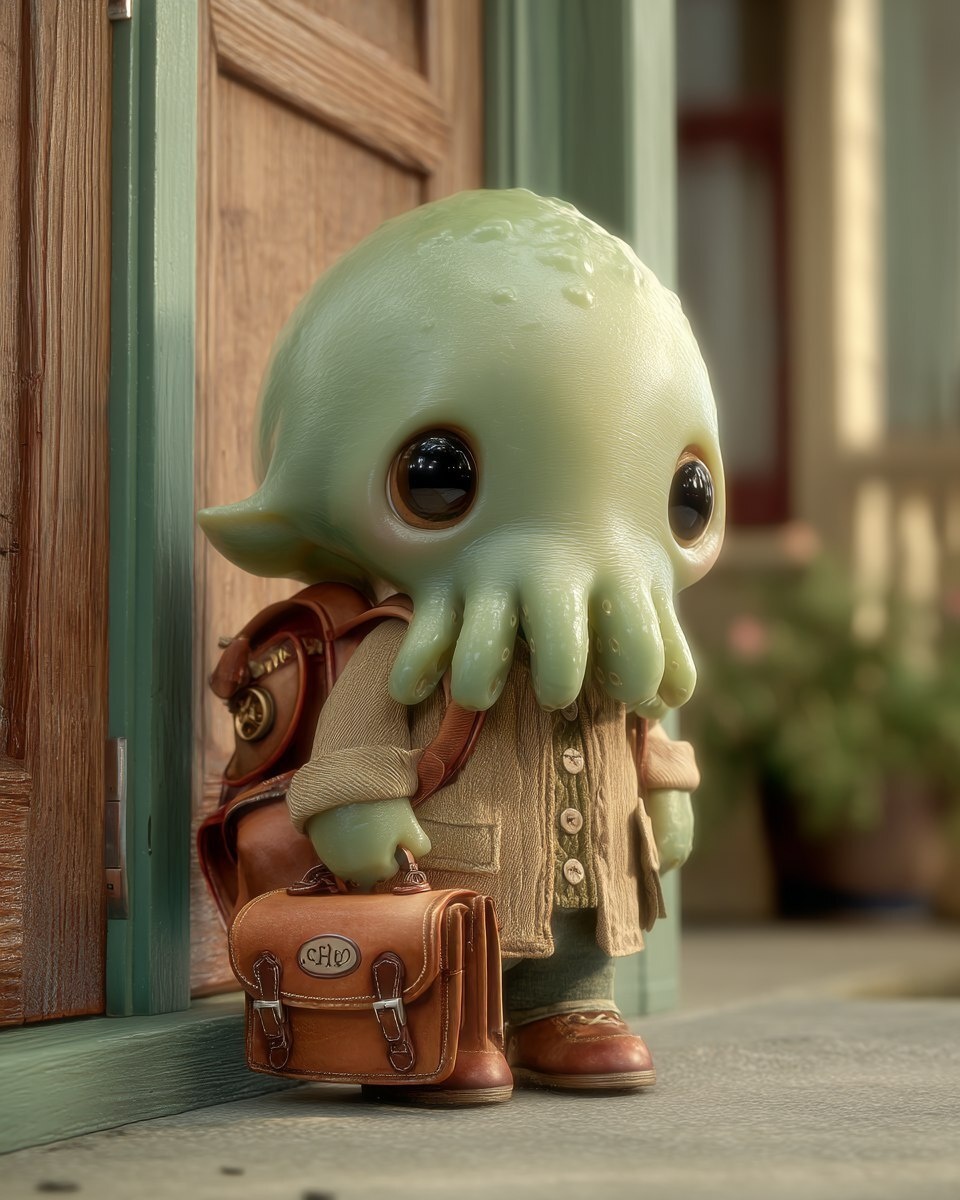 Создано на основе запроса: Disney Pixar style 3d animation. Cthulhu Goes to school. A chibi kid Cthulhu on his first day of school. --- Автоперевод: Disney Pixar Style 3D -анимация. Что скажешь? 🤔 https://dzen.ru/id/65c0c65c86e4f837c27b24d7 #ИИ #AI #нейросеть #midjourney #art