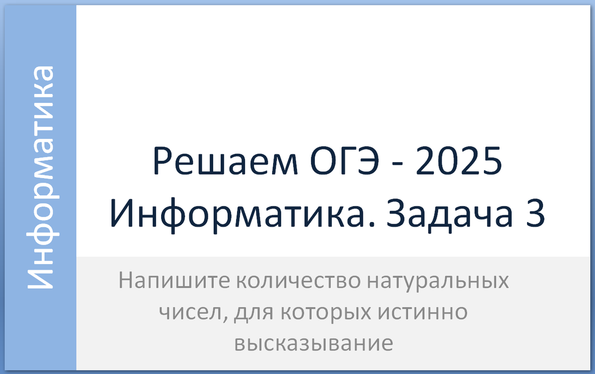 ОГЭ - 2025. Информатика. Решение задачи 3. Напишите количество натуральных чисел, для которых истинно высказывание