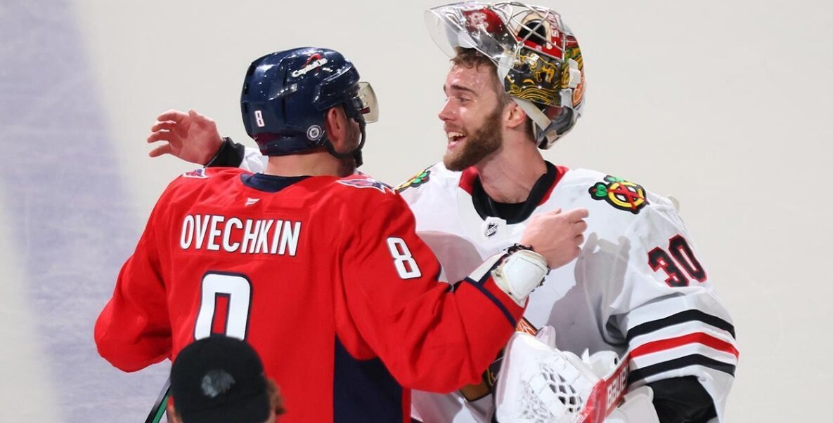 Игроки «Чикаго» остались на льду и поздравили Овечкина с повторением рекорда Гретцки после финальной сирены