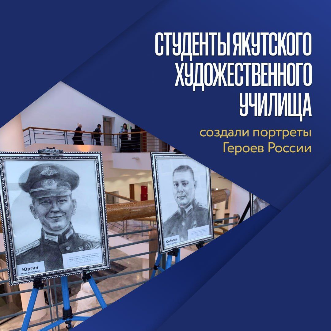 #ПозывнойКультура : Студенты четвертого курса отделения «Живопись» Якутского художественного училища имени П.П. Романова создали портреты Героев России – участников специальной военной операции. Алена Максимова изобразила Дмитрия Егорова и Дмитрия Куценко, Аннавера Никитина – Александра Колесова и Родомира Максимова, Юлиана Петрова – Николая Евдокимова, Андрея Григорьева и Петра Киприянова, Вера Попова – Алексея Неустроева и Филиппа Евсеева, Анастасия Стрекаловская – Николая Соболева и Игоря Юргина. Студентам вручены благодарственные письма Минкультуры Якутии за серию портретов героев СВО. Якутское художественное училище продолжает свою значимую миссию по сохранению и передаче исторической памяти через искусство.