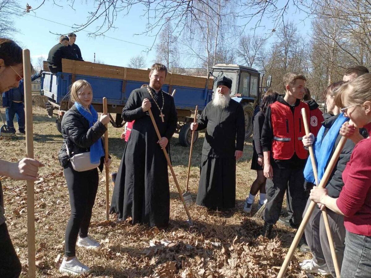 В рамках республиканского субботника 4 апреля 2025 г. благочинный Жодинского церковного округа, настоятель Сергиевского прихода г. Жодино иерей Сергий Чукович и настоятель Михайловского прихода г. Жодино протоиерей Андрей Евдокимов, представители Белорусского союза женщин, профсоюза работников образования и науки, городской организации ликвидаторов аварии на ЧАЭС, члены РОО «Белая Русь» и Коммунистической партии Беларуси, а также работники учреждений образования и учащиеся городских колледжей убирали от старой листвы и мусора территорию, прилегающую к храмам на улицах Советской и Московской.