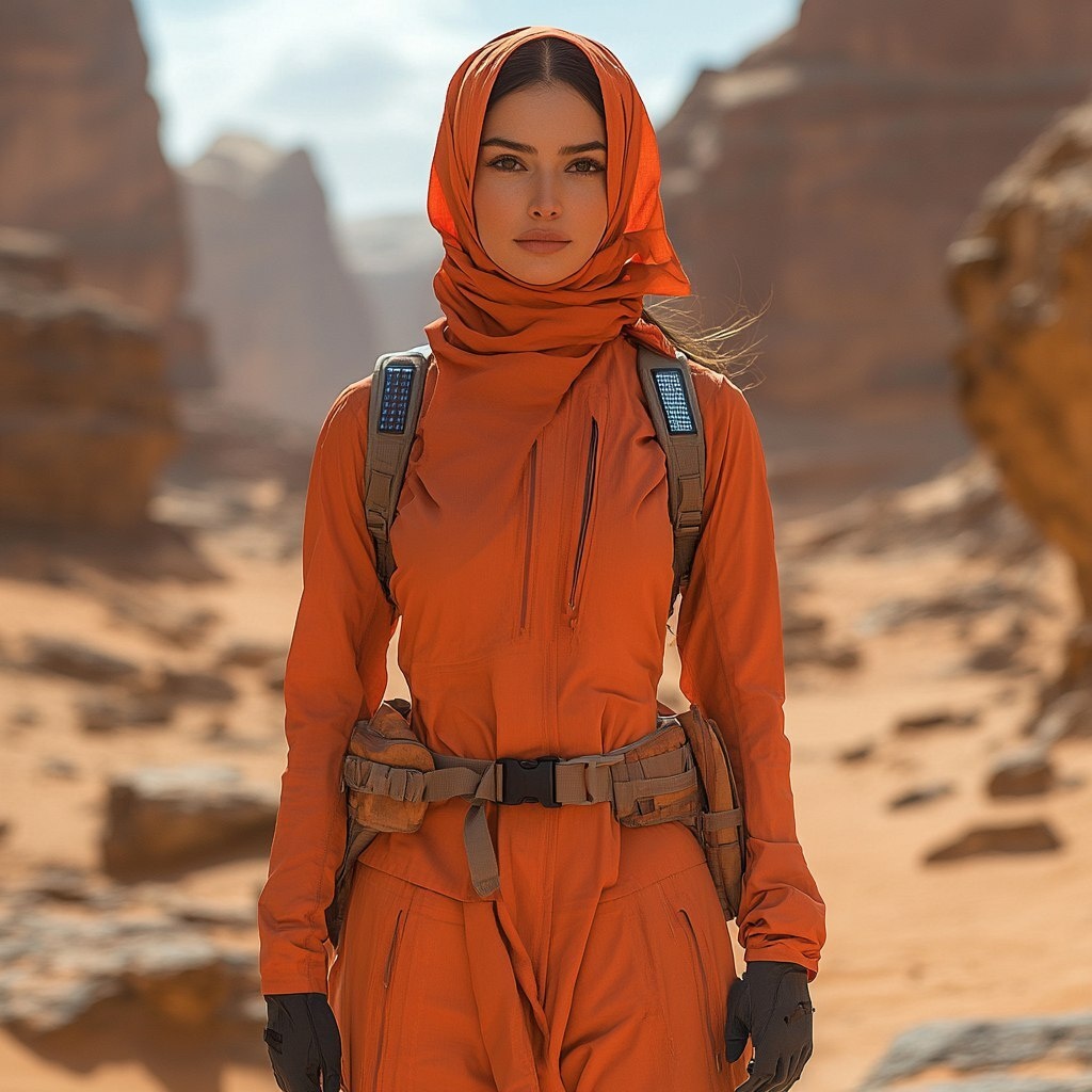 Создано на основе запроса: Eco-friendly sport abaya for desert adventures for woman recycled polyester blended with cooling camel wool, detachable solar-powered LED safety strips, adjustable waist belt with hidden pockets, earthy tones (terracotta red + dune white), model hiking in Wadi Rum Jordan, dust storm ambiance, Patagonia-style outdoor photography --- Автоперевод: Экологичный спорт Абайя для пустынных приключений для женщины, переработанной полиэфир, с охлаждающей верблюжьей шерстью, съемными светодиодными полосками светодиодных светодиодов, регулируемым поясом с скрытыми карманами, землистыми тонами (терракотта красная + дюна белая), модель печений в роме Вади Джордан, пыльная атмосфера, патагона-стиль. Красиво вышло? 🤔 https://dzen.ru/id/65c0c65c86e4f837c27b24d7 #ИИ #AI #нейросеть #midjourney #art