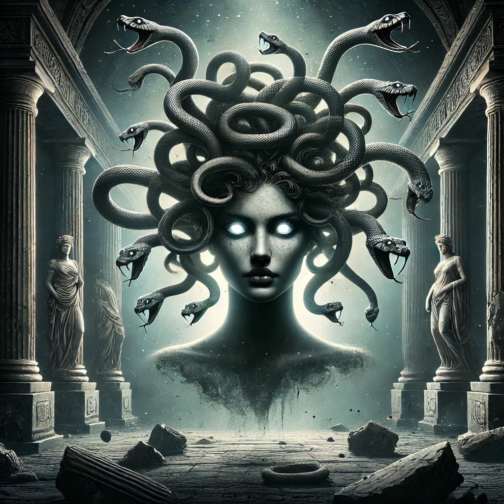Вступление Среди всех чудовищ древнегреческой мифологии одно имя до сих пор вызывает тревожное чувство – Медуза Горгона. Женщина со змеями вместо волос, чей взгляд обращал людей в камень. В учебниках она — чудовище. В легендах — наказанная. Но если копнуть глубже, становится ясно: история Медузы куда трагичнее и многограннее, чем кажется на первый взгляд. Кем была Медуза до проклятия? Мало кто знает, но изначально Медуза не была чудовищем. В одной из версий мифа, изложенной римским поэтом Овидием в «Метаморфозах», Медуза была смертной девушкой редкой красоты. Она служила жрицей в храме Афины и дала обет целомудрия. Но именно красота стала её проклятием. Пожелав овладеть ею, бог морей Посейдон напал на Медузу прямо в храме богини. В ответ Афина… наказала не Посейдона, а саму Медузу, превратив её в Горгону. Это поворот, который современники трактуют как отражение жестоких порядков и бесправия женщин в античном мире. Что стало с ней потом? Медуза, превращённая в чудовище, скрылась от ми