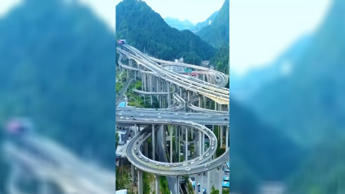«Американские гонки в небе» — В TikTok показали «самую страшную» в мире автомобильную развязку — Видео