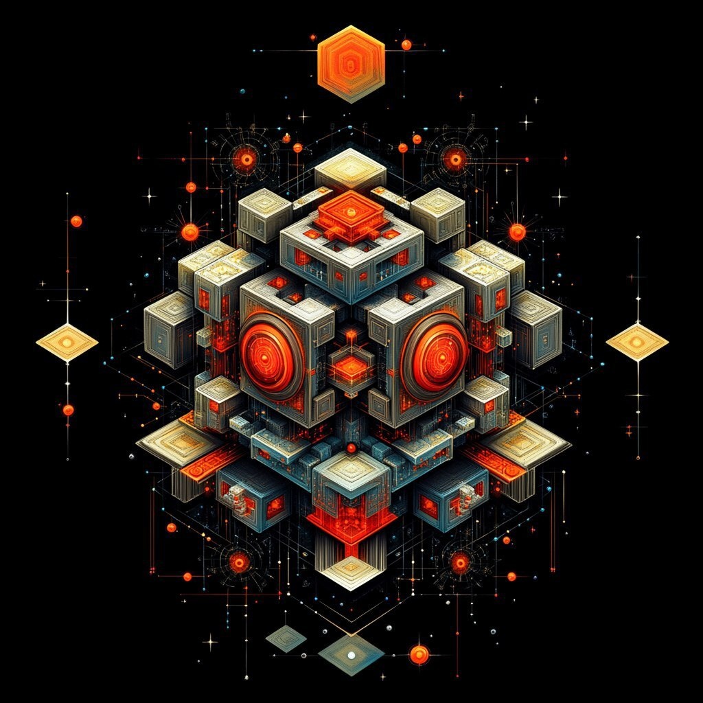 Создано на основе запроса: hyperdetailed centralized fractal icon, self-repeating cubes going inward, vector art symbol, in the style of