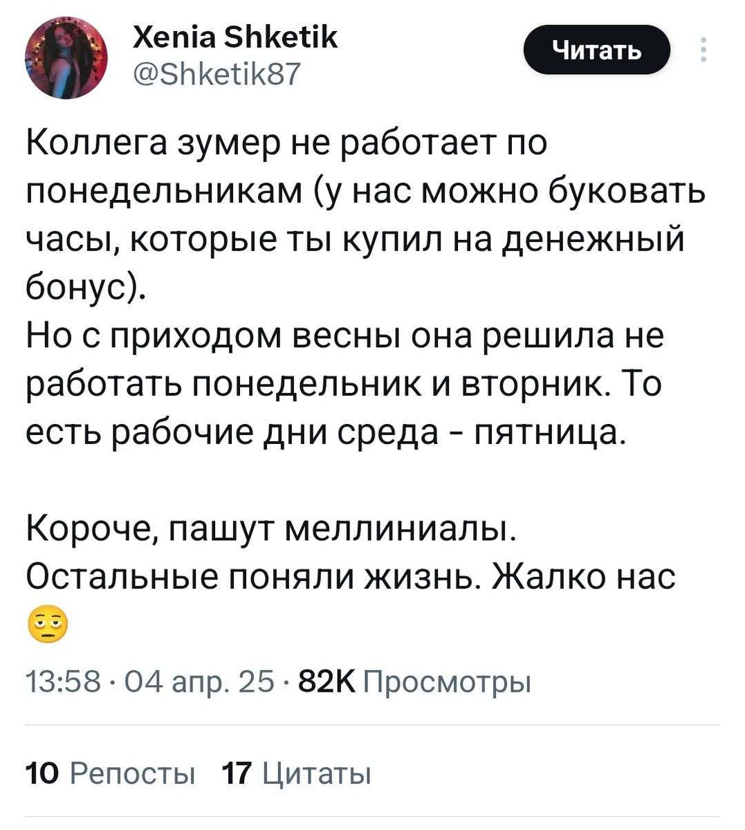 Поколение Z осознало ценность жизни и решили не жертвовать своим временем ради интересов руководителей. Тем временем миллениалы и бумеры, похоже, переживают этот отказ от традиционных трудовых норм. Наш уютный канальчик 🤖 Анимация | СhatGPT-4 | Помощь с резюме