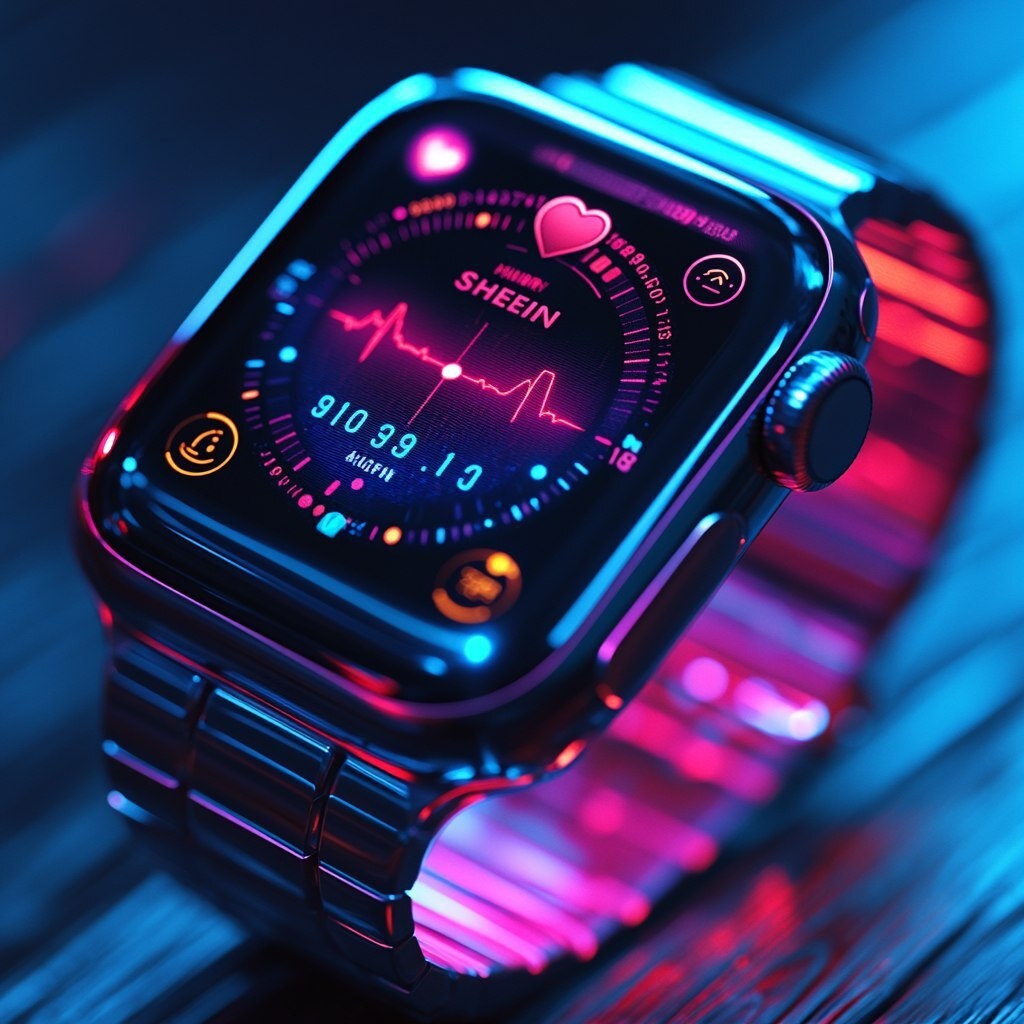 Создано на основе запроса: Apple Watch ultra app UI design for SHEIN Fitness, dynamic running mode interface with gradient neon motion trails, real-time heartbeat and calorie burn visualized as floating 3D holograms, minimalist circular progress bars in SHEIN's signature pastel pink and cyber teal, Arabic/English bilingual toggle, motivational pop-up animations when hitting goals, hyper-futuristic cyberwear aesthetics --- Автоперевод: Apple Watch Ultra App Design Design для Shein Fitness, динамического интерфейса режима бега с градиентными неоновыми движениями, сердцебиением в реальном времени и ожогам калорий, визуализированных как плавающие 3D-голограммы, минималистские циркулярные бары прогресса в фирменных пастельных точках и кибер-билете, арабский/английский тог, мотивационные всплывающие всплывающие анимации, ада-жители, гиперин-жители, гиперин-жители, гипериологические циклы. Необычно выглядит? 🤔 https://dzen.ru/id/65c0c65c86e4f837c27b24d7 #ИИ #AI #нейросеть #midjourney