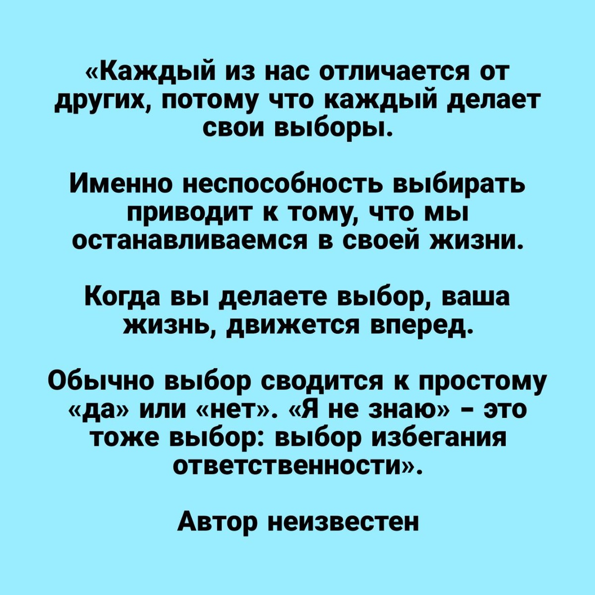 Делая выбор, мы берём ответственность за последствия этого выбора.