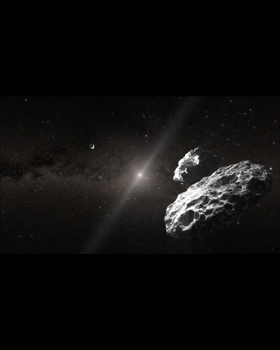 Концепция системы 148780 Altjira в поясе Койпера Этот художественный макет изображает возможный сценарий для системы 148780 Altjira в поясе Койпера Солнечной системы: иерархическую тройную формацию, где два близких компаньона обращаются вокруг третьего тела.
